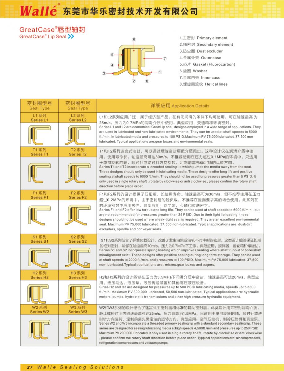 Consists of stainless steel and PTFE rotary turned lip. By combining custom rod seal and peripheralhardware system to abstain the special advantage. Perfect construction is made to meet the special sealing demand. Such as durability, power consumption saves and heart saving purpose.